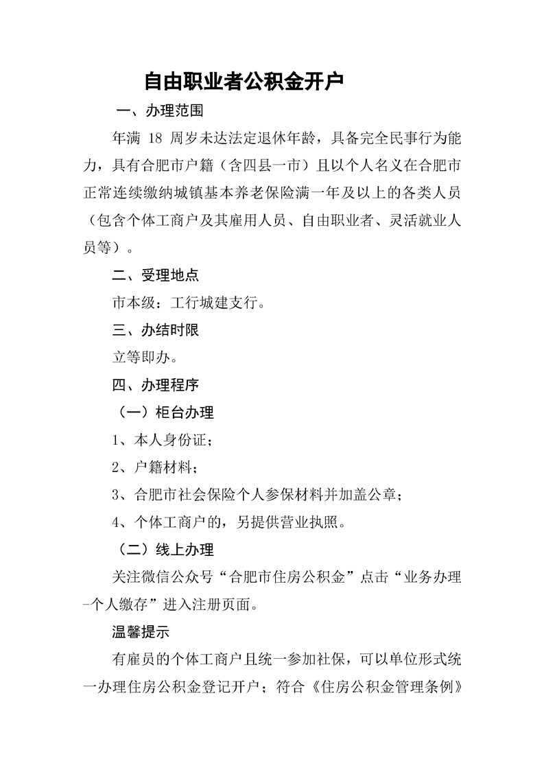 合肥自由职业者公积金开户指南