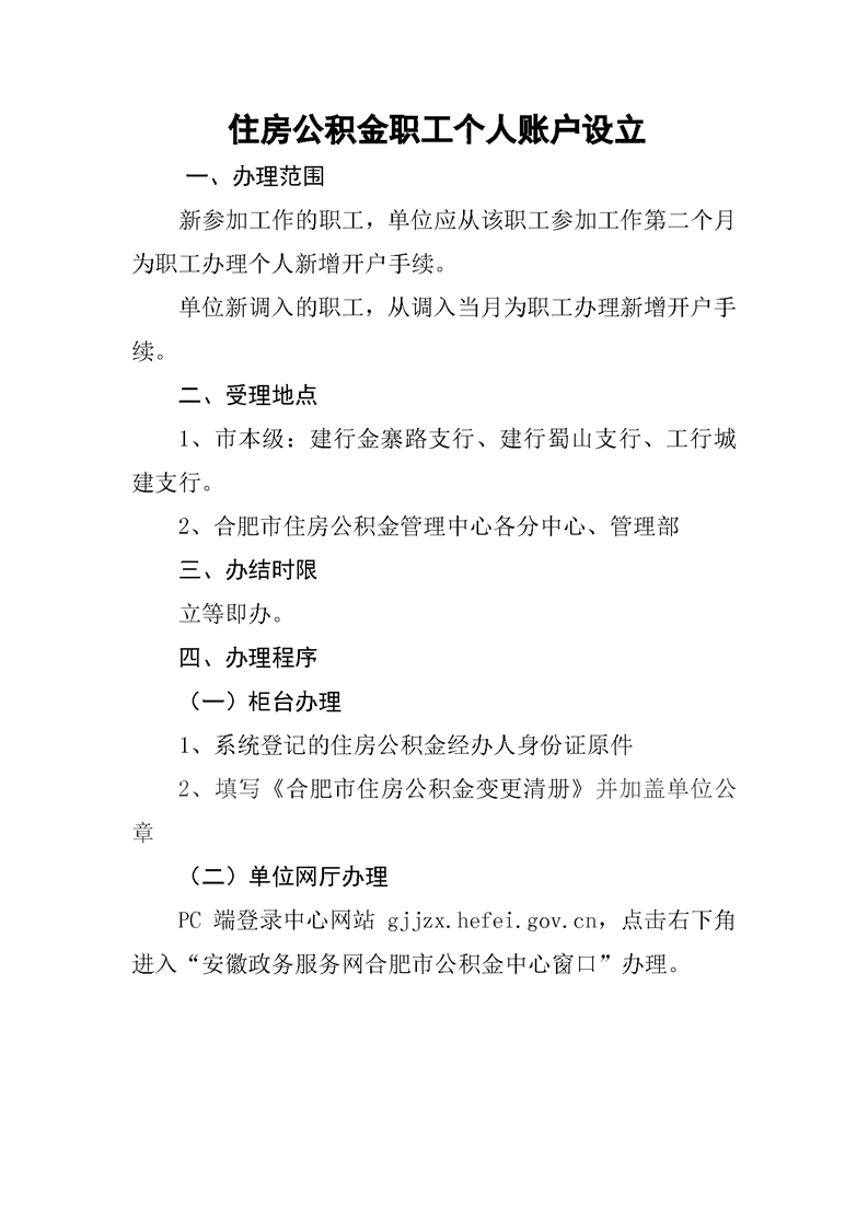 合肥市住房公积金职工个人账户设立