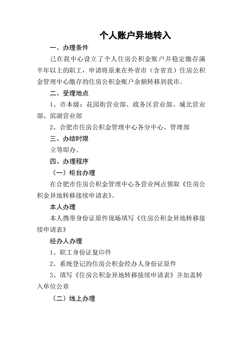 个人公积金账户异地转入