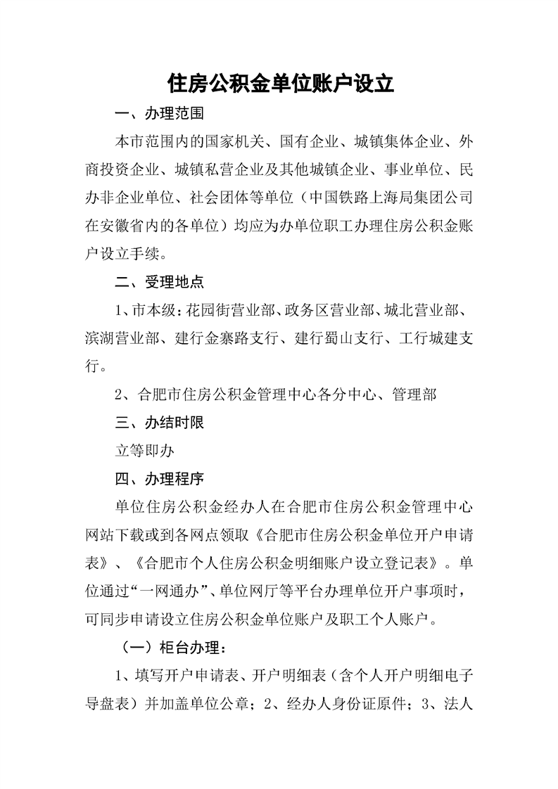 住房公积金单位账户设立指南