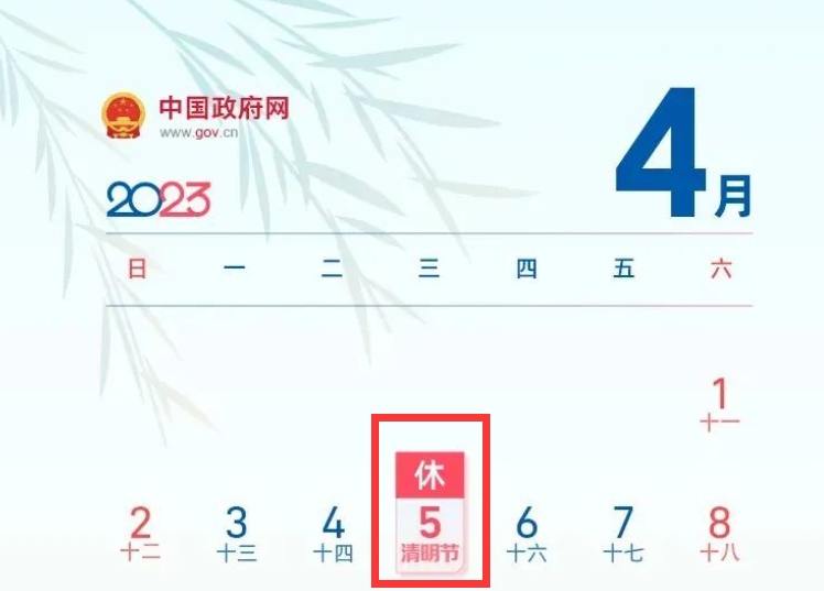 | 【导语】: 根据国务院办公厅此前发布的 《关于2023年部分节假日安排的通知》 今年清明节是周三 4月5日放假,共1天 这次不用调休 |