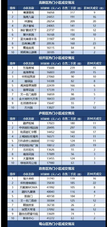 此次主要包括了合肥4大主城区的小区,包含了蜀山, 包河,瑶海和庐阳区;