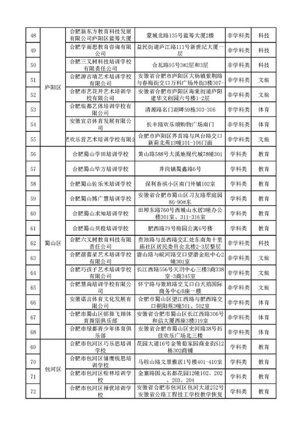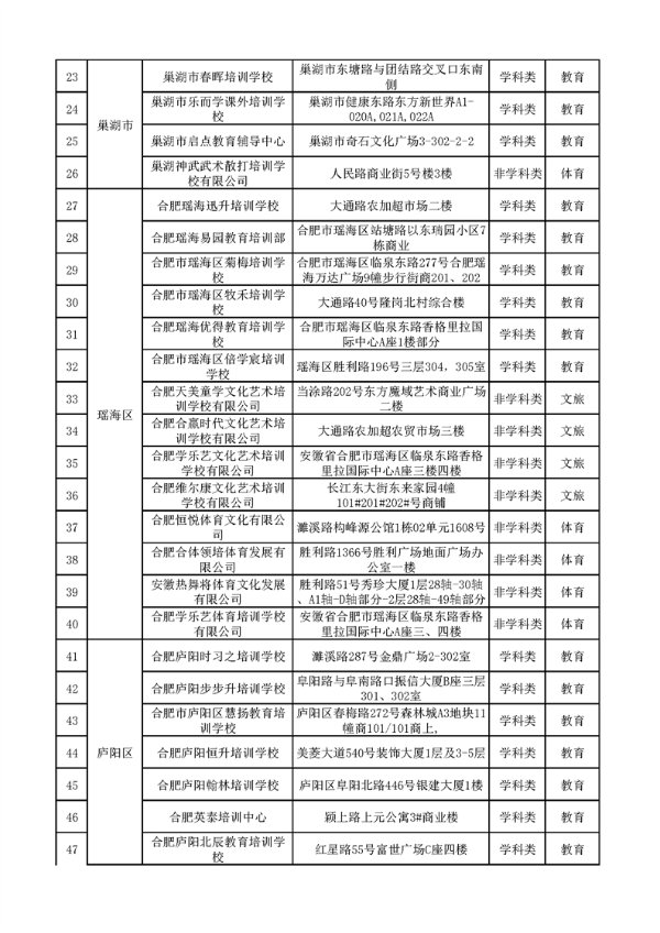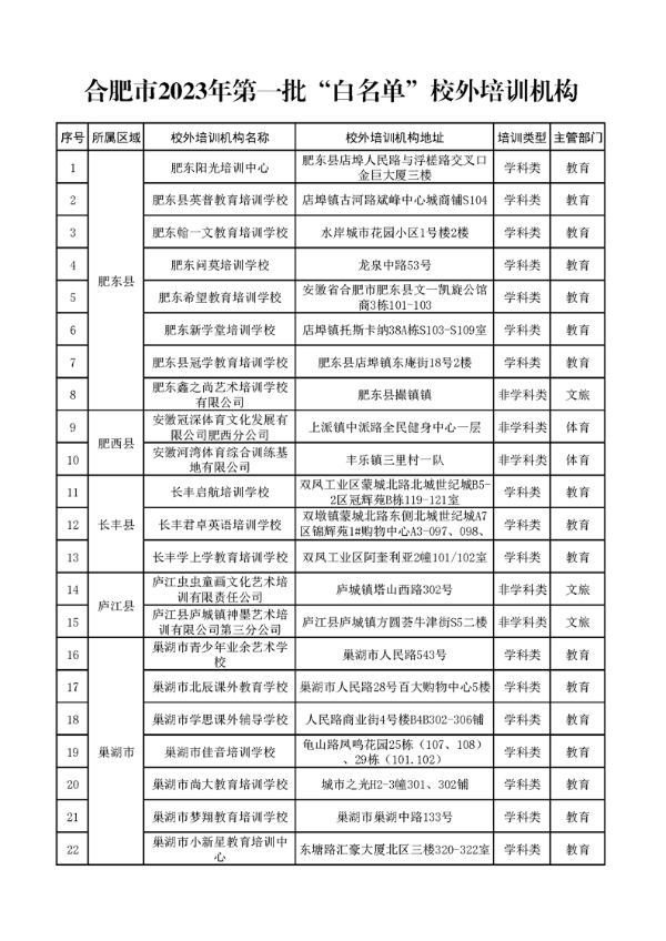 | 合肥市2023年第一批校外培训机构“白名单” |