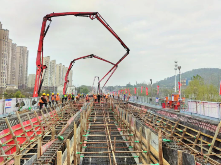 | 【导语】: 3月31日下午,随着最后一方混凝土缓缓入模,历时9小时,G312合六路(新桥大道-侯店路)工程全线首联现浇箱梁成功完成浇筑,标志着工程建设再次取得阶段性胜利,拉开了项目桥梁上部结构施工的序幕。 |