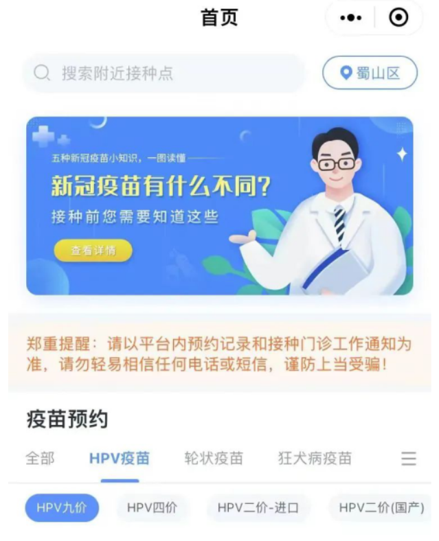 五、注意事项 1.预约成功,但安排接种期间因各种原因(如发热、使用镇痛药、抗生素或抗炎药等药物,准备妊娠、妊娠、哺乳期及生理期女性),将不予接种,名额均不予保留,建议若存在上述情况请勿预约。 2.新冠疫苗接种完间隔15天可接种hpv疫苗 3.报名信息请务必认真填写,接种时将核对本人姓名、身份证等相关材料若发现有条件不符情况将不予接种。 六、疫情防控 进入接种门诊大厅,扫安康码、验行程码,查验新冠疫苗接种证明(未接种者登记个人信息),有中高风险地区旅居史及省外回来接种的人员还需48小时核酸证明(主动告知医生),戴口罩、测体温、防聚集,保持一米间距,有序进入诊疗区。感谢您的理解和配合。 更多信息请关注微信公众号【合肥帮】微信号:hefeibang! 关注我们,在合肥不迷路!