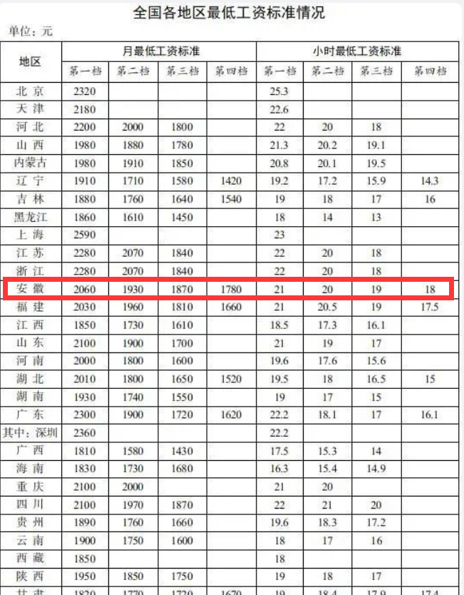 根据人社部网站发布的最新数据显示, 合肥的月最低工资上调到2060元, 这与之前的1650元相比, 每个月增加了410元! 这在工资水平整个全国来看, 与最高的上海2590相差了530元, 但是与江苏和浙江差距明显缩小! 作为特大型城市的合肥,经济实力和人口数量的增长确实喜人, 但是工资水平也要相应的得到提升! 更多信息请关注微信公众号【合肥帮】微信号:hefeibang! |